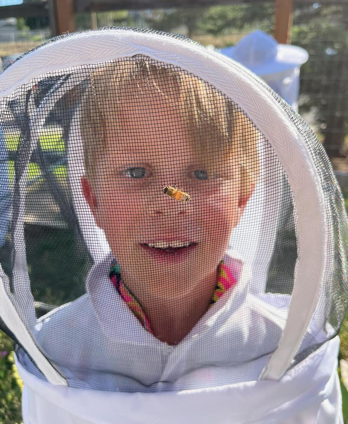 A student in Estes Park School District in Colorado gets an upclose look at a honey bee.