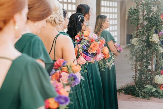 Bold jewel tones and vibrant florals make up this summer wedding your own backyard and recipes to pair
