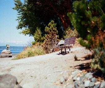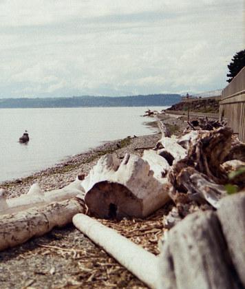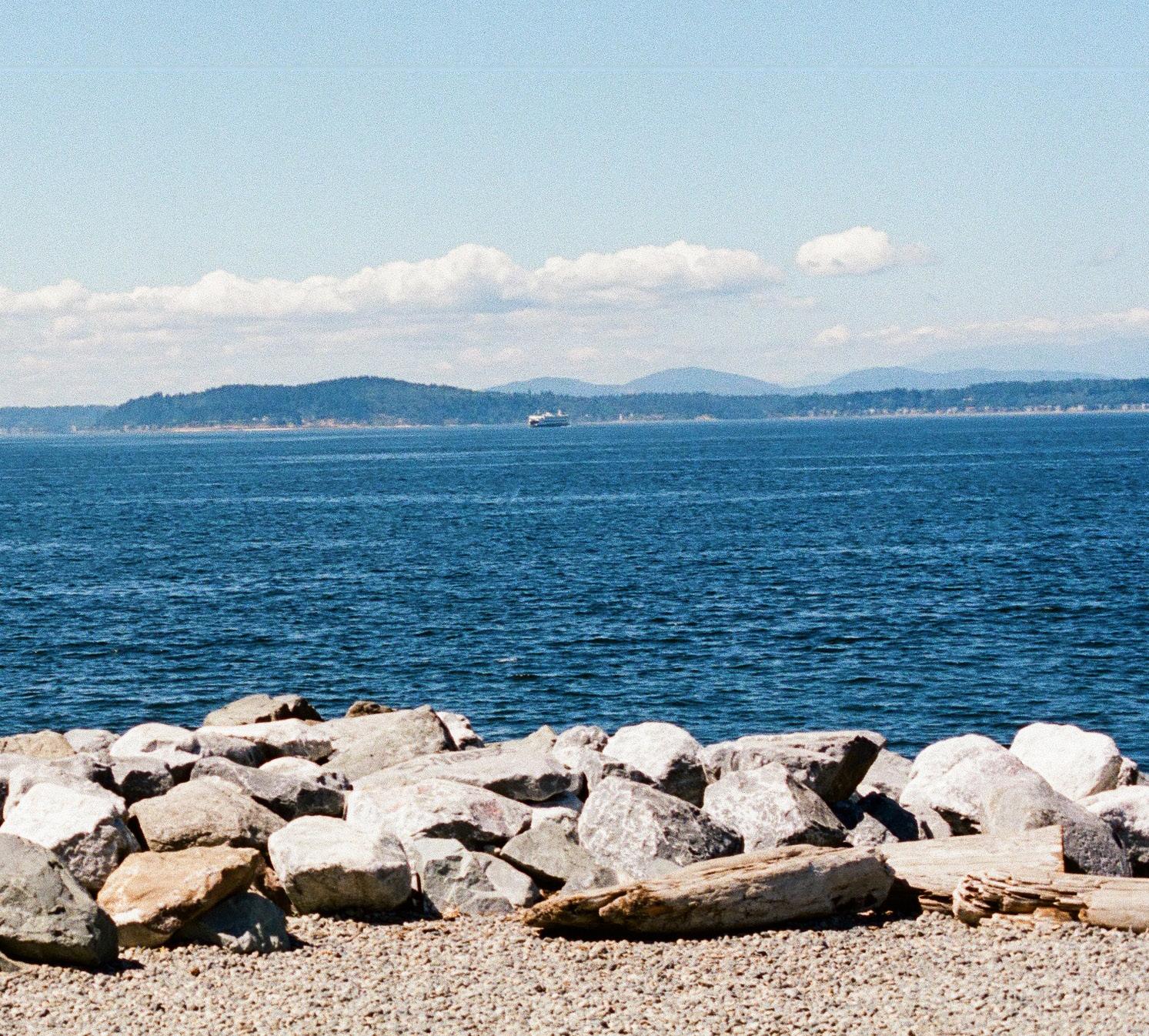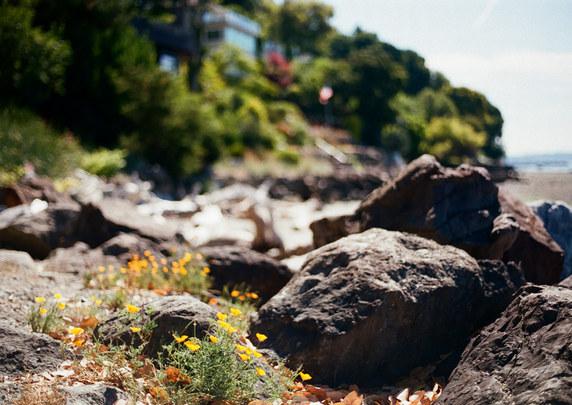 At the bottom of the hill at West Magnolia Viewpoint lies West McGraw Street. Descending a rickety old staircase, you come upon a quiet alley with a handful of beach bungalows facing the sound. The winding road opens up to a hidden gem—the panoramic viewpoint at West McGraw Street, SSE #109. An expansive beach is awaiting discovery. From here you can walk for miles, taking in views of Mt. Rainier, Bainbridge Island, Ferry Boats, and the Olympic Mountains. The red peeling bark of Pacific madrone trees creates a tapestry of hues, while the delicate petals of California poppies add vibrant pops of color against the muted tones of sand and stone. Wild and untamed blackberry thickets claim the underbrush, providing visitors with sweet sun-soaked berries in the August afternoon. This space is still untamed by people, existing just as it is, a subtle testament to the unpredictable nature of the environment.