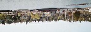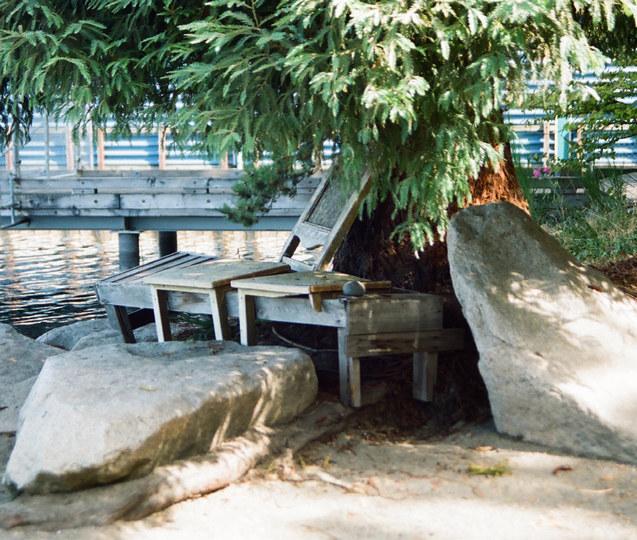 Flexible spaces along the dock provide for lounging in tree-dappled shade, alone or with friends, views across and down the bay, and water access for swimming or pulling up a kayak for lunch.