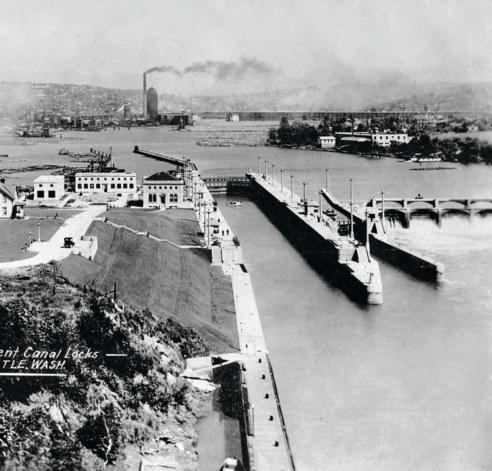 Salmon Bay existed for millennia, a narrow, tidal embayment off Puget Sound, left by retreating glaciers, an estuary ringed by temperate coniferous forest. That all changed in the early 1900s when the bay was dammed with the Hiram Chittenden Locks as part of a massive scale “replumbing” of the entire region to grow maritime access through the city.