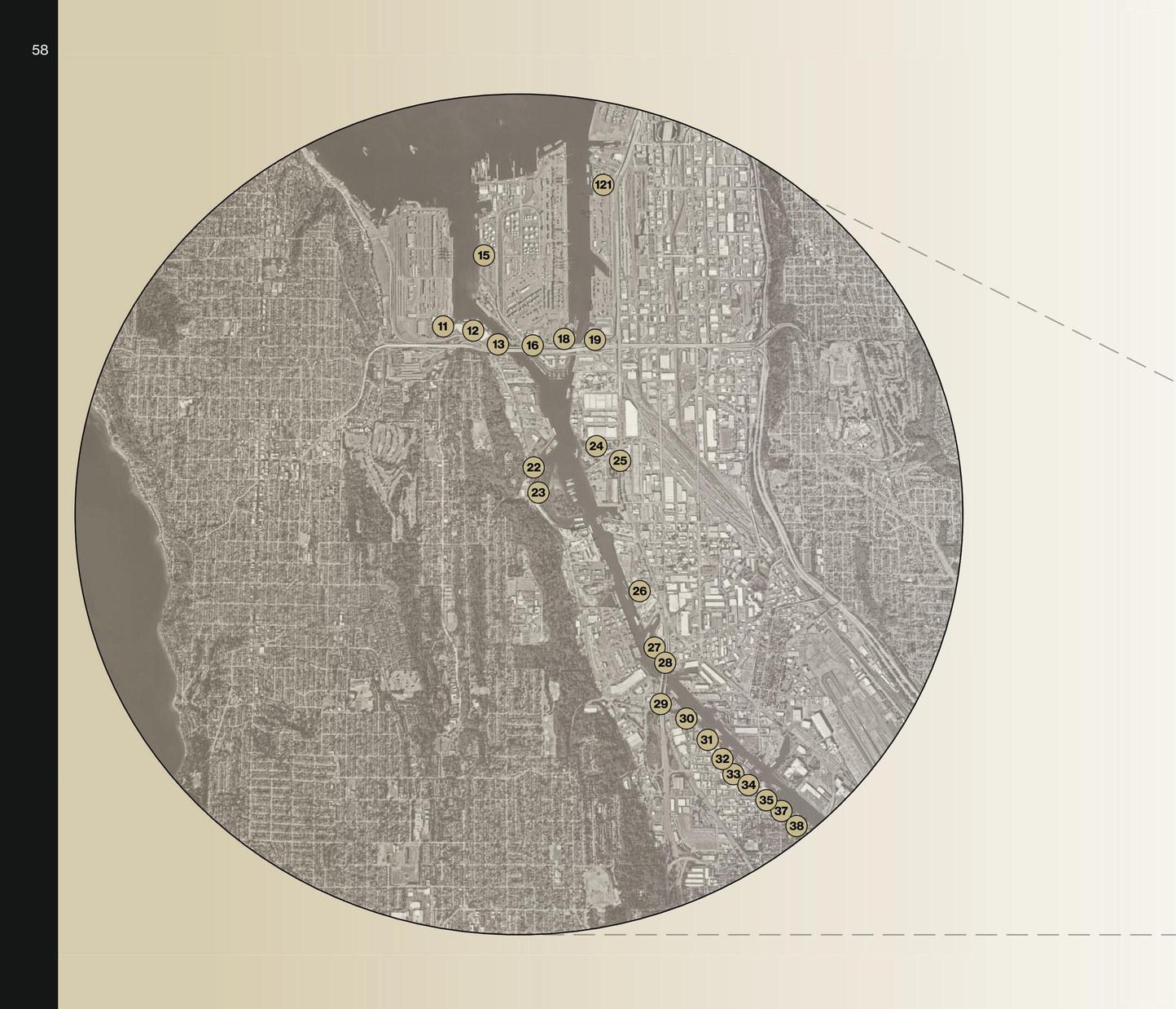 The Duwamish River is simultaneously well known and easily forgotten in the scope of Seattle waterways. Rich in industrial history, the Duwamish River has seen many different eras of Seattle’s culture. The river is essential to the Duwamish Tribe and other indigenous people of the area. Still an industrial hub, many of the street ends along the Duwamish are occupied by encroaching businesses along the river.
