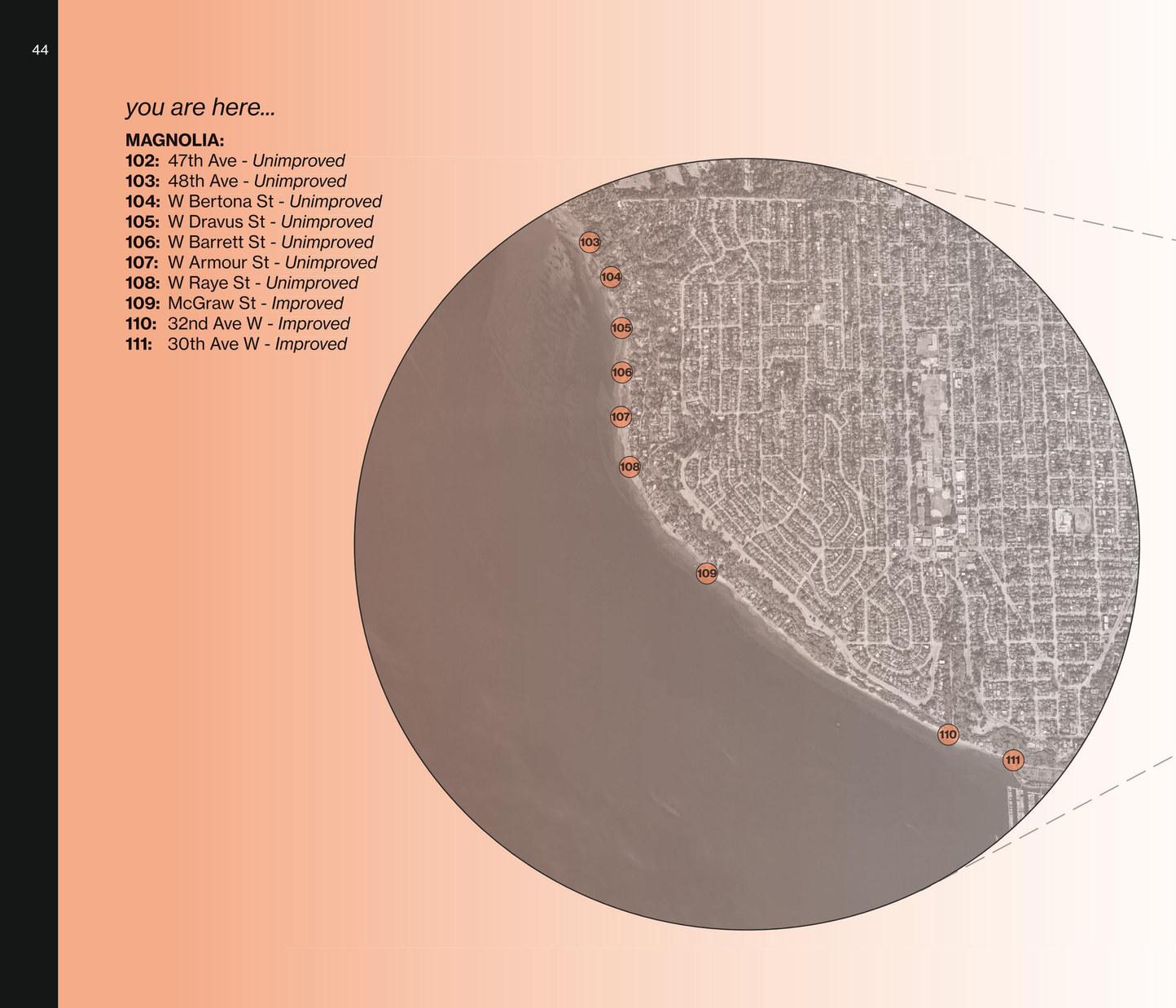 This began as a project about water. A closer peek at our curiosity surrounding it, why it feels so meaningful, and where our place within it is. And then it was just about the street ends, how many there are, what the incredible abundance of them means for our community, our history, and our reality.