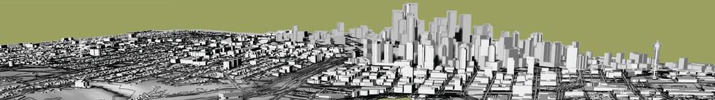 Over this web of water and the hills that shape it is a rectilinear street grid that stretches across the whole city, a human attempt to organize and impose structure on glacially shaped landscape.