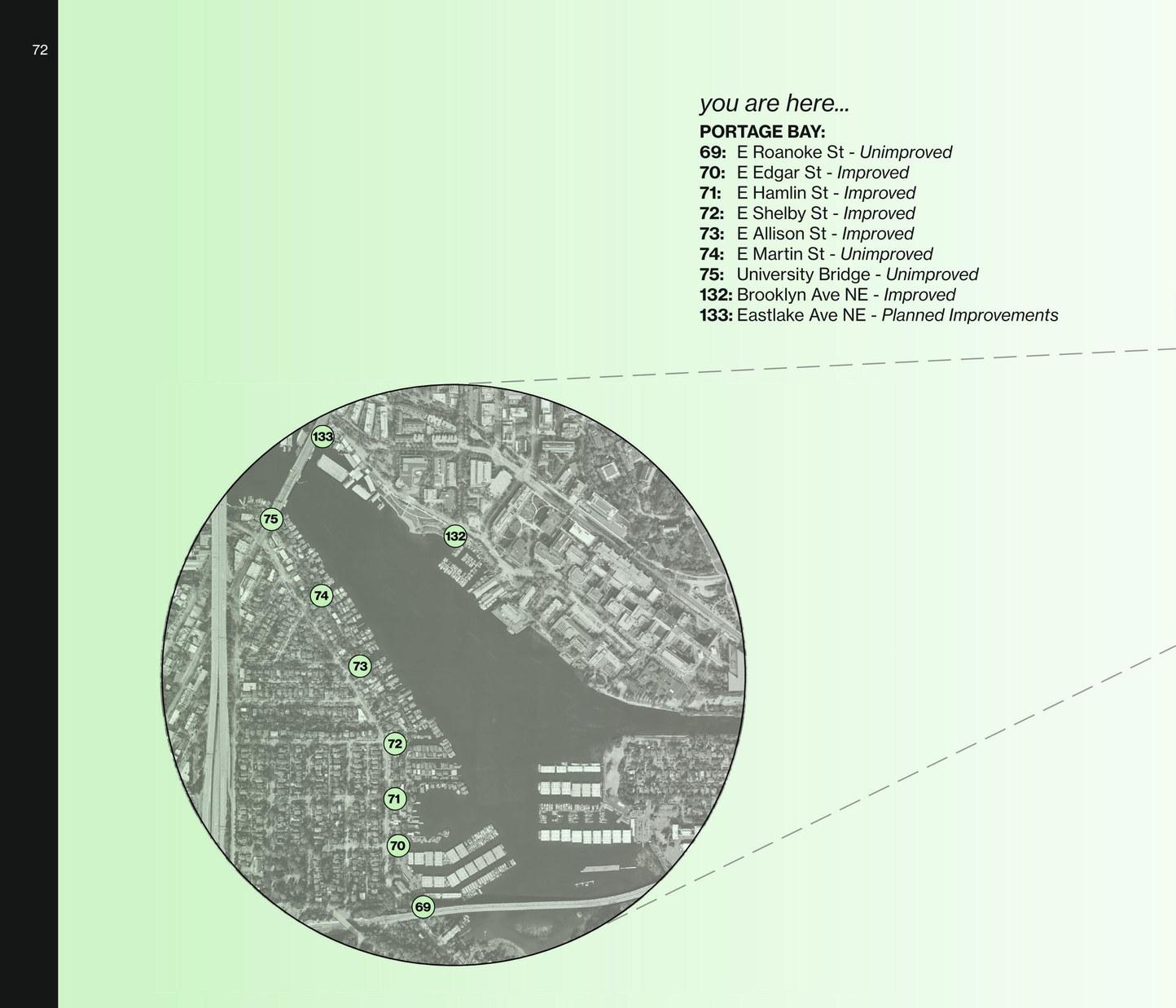 We dream of leveraging the collection of street ends along the bay (with other public waterfront access), considering and shaping them collectively, to bring to life the change, archeology, and future of Salmon Bay.