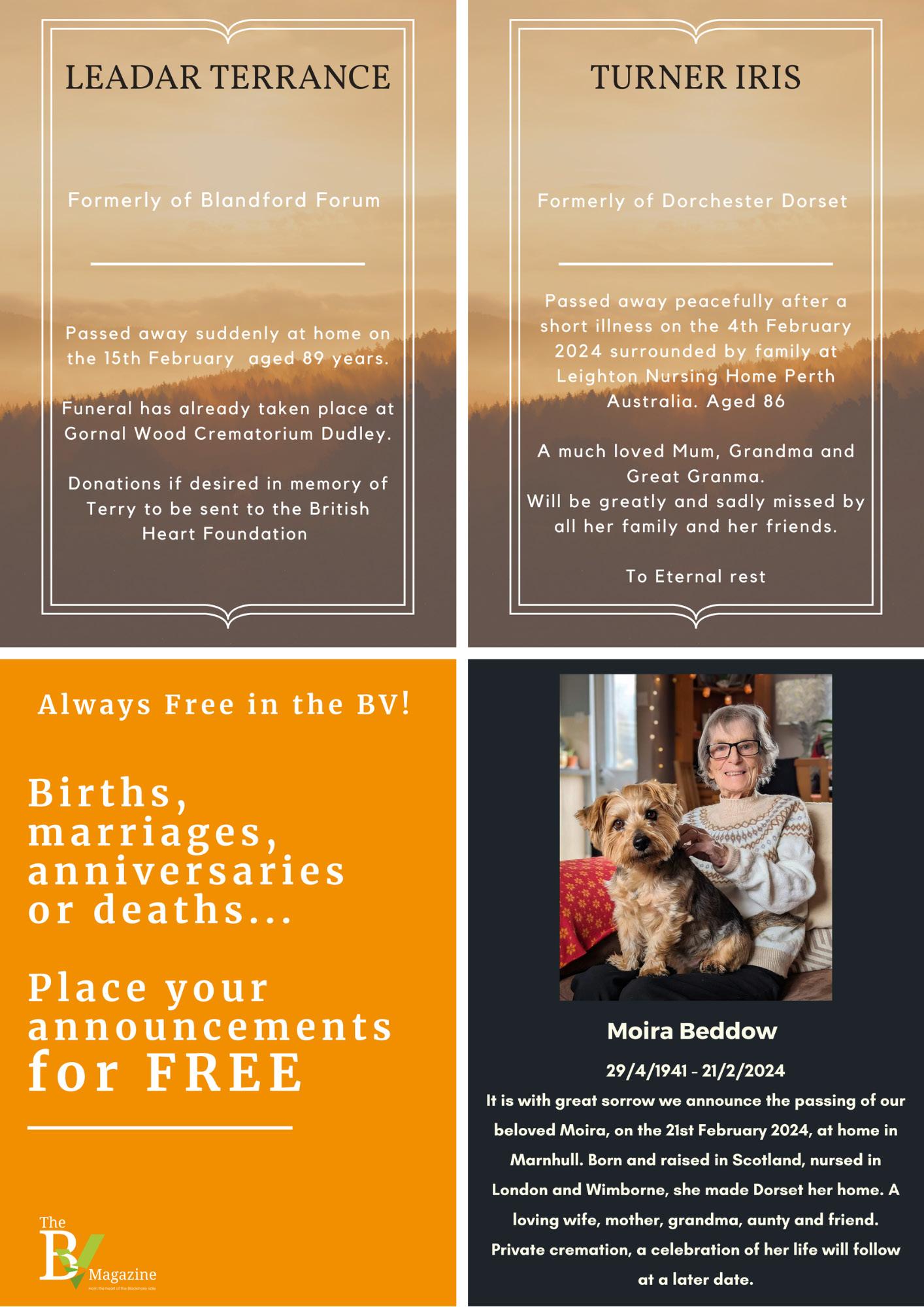 Available 24 hours Personal service day & night. Pre-payment plans, memorials, private chapel of rest. Water Street Mere BA12 6DZ 01747 860361 www.lchillandsonfuneraldirectors.co.uk