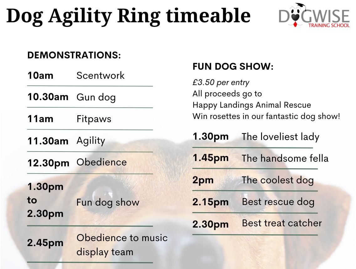 in the demos – enter your own pooch into one of the classes! You can see the full timetable in the image below.
