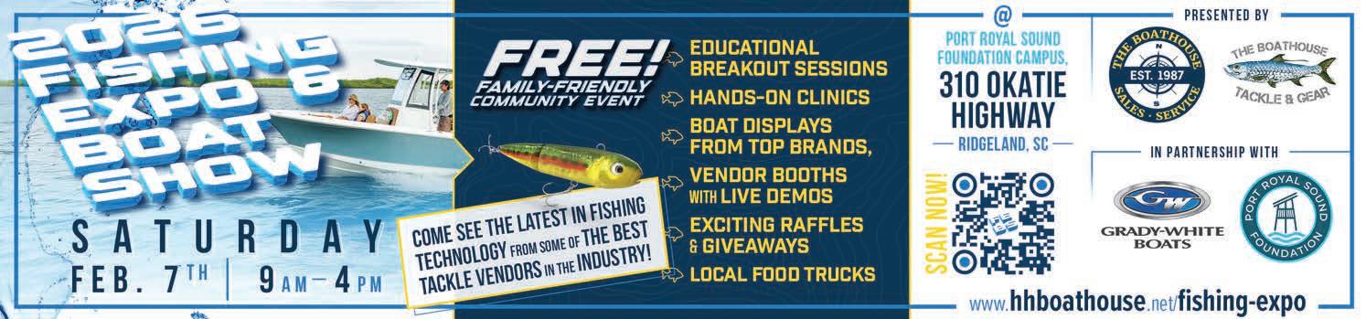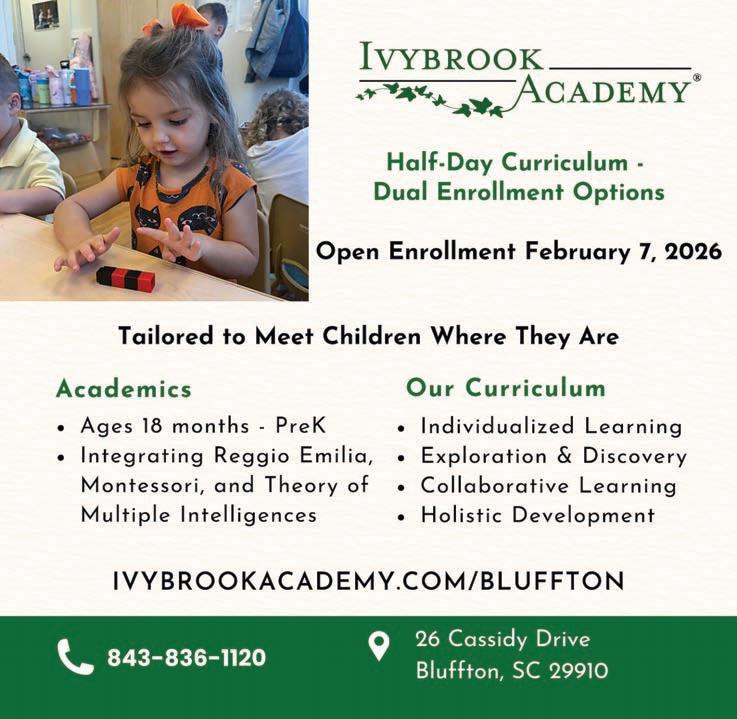 THE BLUFFTON SUN Issue 2, January 21, 2026, is published twice monthly by Beaufort Media Group, LLC, 181 Bluffton Rd Suite F103-2 Bluffton, SC 29910. Periodicals Postage paid at Bluffton, SC and at additional mailing offices. POSTMASTER: Send address changes to THE BLUFFTON SUN, PO Box 2056, Bluffton, SC 29910-2056.