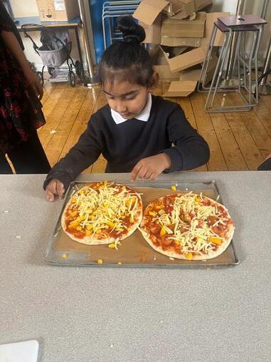 Khalid’s classmates, Mariya and Muhammad from 6E planned and prepared the activities for us with specifically Khalid in mind As part of a developing school initiative pupils who are formal learners join those on pathways to plan, support and build caring relationships with one another Both children did a brilliant job at organising the cooking session and working with Khalid on this They prepared the table while the pizza’s were cooking and then helped everyone to juice at tea time A big well done to them both