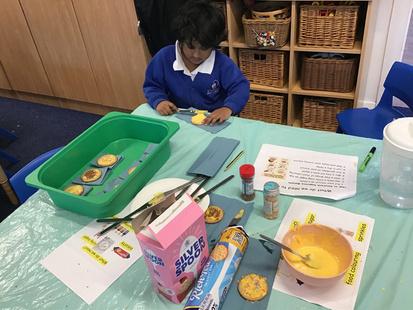 In Reception, our theme for the term is, ‘Celebrations’. We read the ‘Birthday Invitation’ story and discussed the different ways we celebrate our birthdays. We also decorated biscuits with icing sugar, food colouring and lots of sprinkles for Ella’s birthday tea party. The biscuits looked colourful and they tasted delicious.