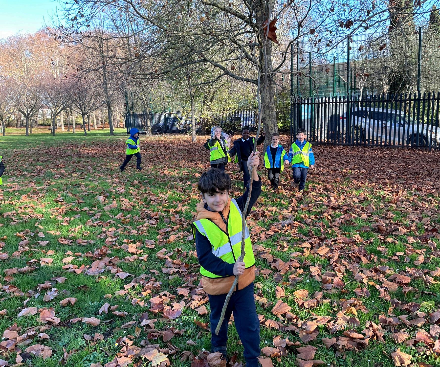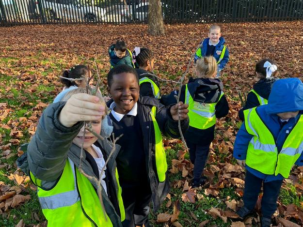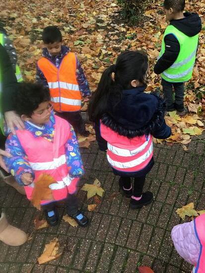 The children discovered signs of the season, collecting colourful leaves, conkers and acorns