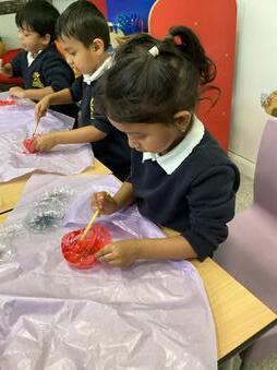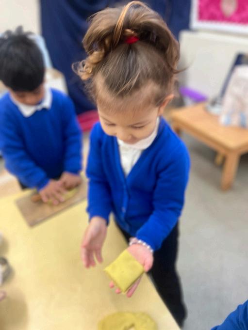 Children in Nursery enjoyed exploring the play dough today, using their hands and a variety of tools to bring their ideas to life. They pressed cutters into the dough to make shapes and patterns, and practiced rolling, squashing, and stretching the dough. This hands-on activity encouraged creativity, strengthened fine motor skills, and sparked lots of lovely conversation and imaginative play.