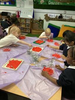 The children took part in a number of different activities including, painting, cooking, singing and creative arts. As part of their art sessions the children created a rememberance wreath using a varity of different tools, media and materials.