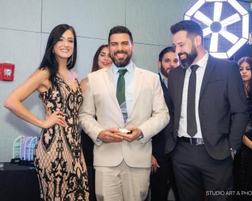 O advogado Stephen Bandar e sua esposa - com membro da equipe foram homenageados no Baile de Gala do Brazilian Times, em reconhecimento à sua trajetória e contribuição.