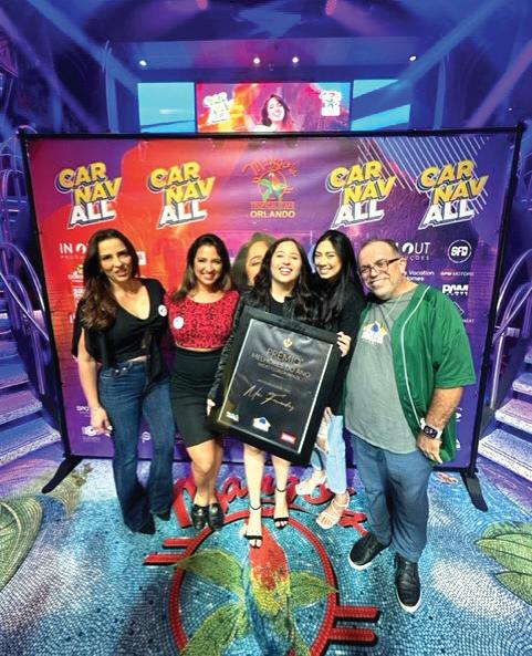 Locutores da Radio Florida entregando o prêmio revelação da Radio Florida para a Mari Fernandes na premiação da melhor, Radio Florida Brazil.