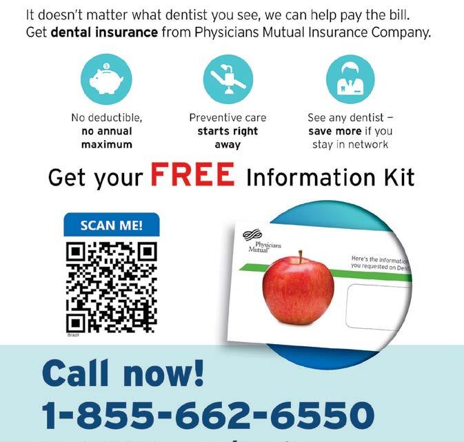 ADVERTISE Friday, March 3rd of 2023 24 It doesn’t matter what dentist you see, we can help pay the bill. Get dental insurance from Physicians Mutual Insurance Company. Preventive care starts right away No deductible, no annual maximum See any dentist — save more if you stay in network DENTAL Insurance Get help paying big dental bills Call now! 1-855-662-6550 Dental50Plus.com/Brazil Product not available in all states. Contact us to see the coverage and offer available in your state. Contact us for complete details about this insurance solicitation including costs and limitations. This specific offer is not available in CO. Call 1-800-969-4781 or respond for a similar offer. In WV: To find a provider in the network visit us at https://www.physiciansmutual. com/web/dental/find-dentist. Certificate C250A (ID: C250E); Insurance Policy P150; Rider Kinds B438/B439. In CA, CO, ID, KY, ME, MD, MA, MI, MO, NV, NJ, NC, ND, VA: Includes Participating Providers and Preventive Benefits Rider. Certificate C254/B465 (PA: C254PA); Insurance Policy P154/B469 (GA: P154GA; OK: P154OK; TN: P154TN). 6323 Get your FREE Information Kit Faça a Diferença! Adote -Um- Manatee 1-800-432-JOIN (5646) savethemanatee.org Segue a gente lA ACESSE AGORA APONTE O CELULAR