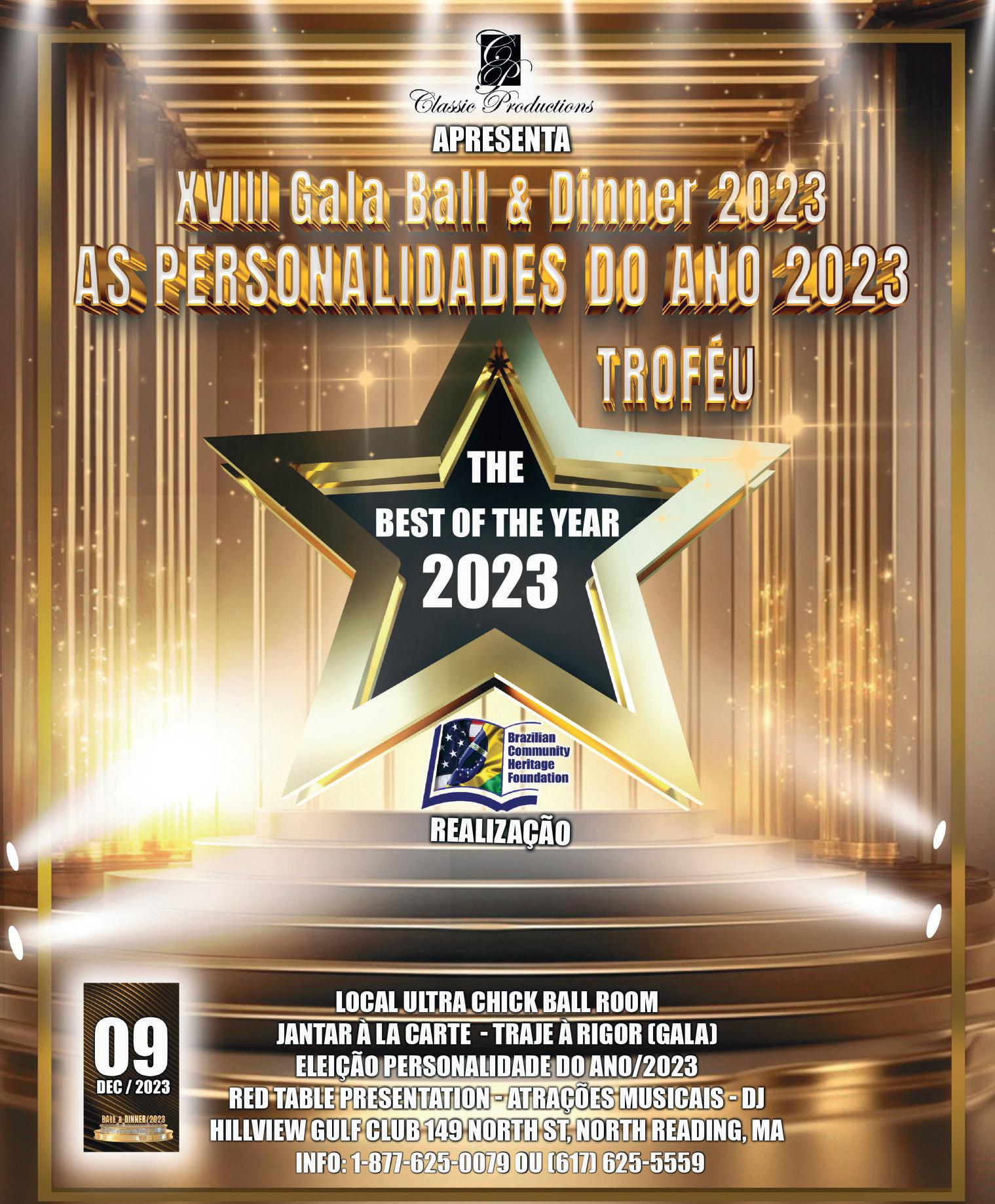 O Baile de Gala & Jantar da Comunidade homenageará algumas personalidades que participaram da formação e desenvolvimento da comunidade brasileira neste país. Os homenageados receberão o troféu “The Best of the Year/2023” a
