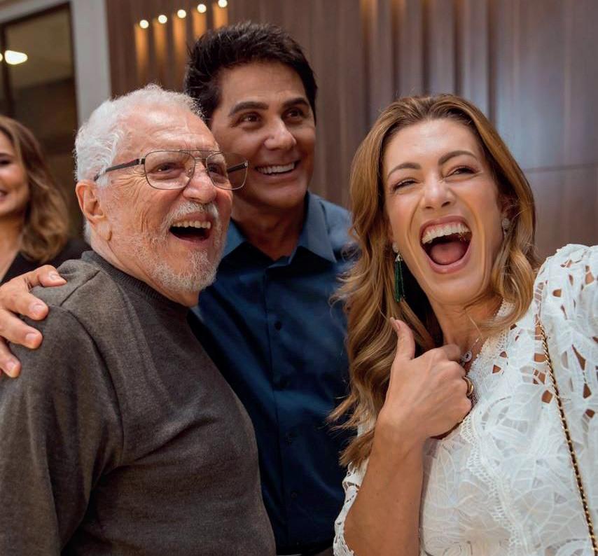 Carlos Alberto de Nóbrega comemora 88 anos em grande estilo e ganha beijão da esposa Dra. Renata de Nóbrega