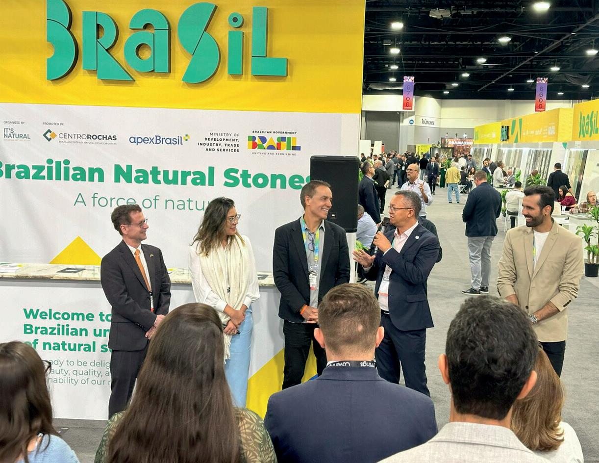 ApexBrasil. Com projeto assinado por Rômulo Pegoretti e execução da Nós Engenharia, o espaço apresentará a diversidade geológica do Brasil com jardins suspensos e ambientação clean. A cerimônia de inauguração acontece no dia 29 de abril, às 12h, no Pavilhão Brasileiro, com presença de empresários e autoridades. O momento marca o início oficial da participação brasileira no evento. A área do Brasil será composta pelas seguintes empresas: Altivo Pedras, Amagran, Andrade Stones, Borchardt Stone, Bramagran, Brasigran, Brothers in Granite, Calvi Granitos, Capital Granite, Collodetti, Costa Gra-
