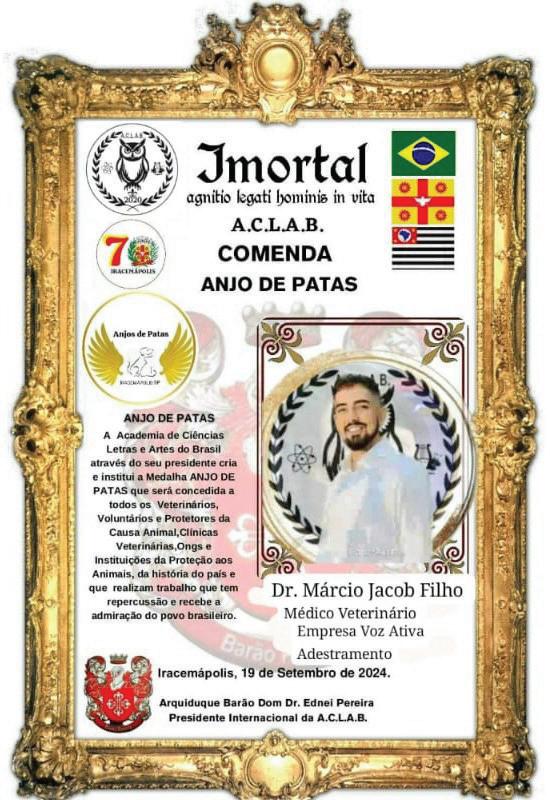 importância da formação e do conhecimento especializado no trato com os animais. Márcio Jacob tem mostrado como a educação pode ser uma ferramenta poderosa para promover a interação positiva entre humanos e animais, contribuindo para uma sociedade m respeitosa e consciente. O evento é uma oportunidade não apenas para reconhecer o valor do trabalho de jovens como Márcio Jacob , mas também para sensibilizar a comunidade sobre a relevância dos cuidados e do respeito aos seres vivos. A medalha de honra que será entregue a ele simboliza o valor daarceria com a Associacao World Art Show Brasil dedicação ao próximo e a importância da formação de cidadãos comprometidos com a ética e o cuidado ambiental, refletindo uma formação integral que se estende além dos muros da universidade.