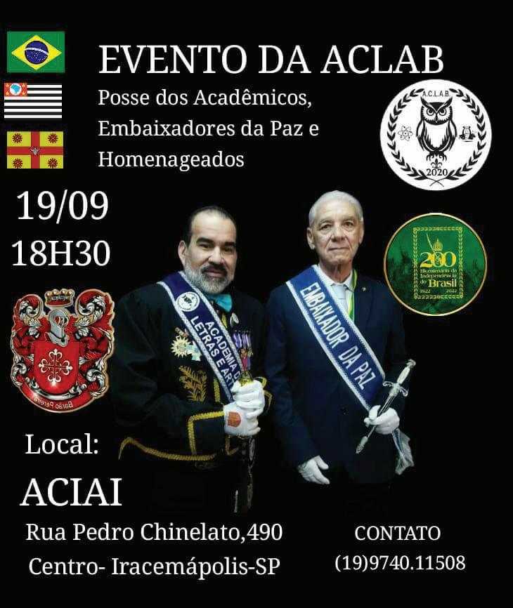 O evento. promovido pela ACLAB - Academia de Ciências Letras e Artes do Brasil, dirigido peço Arquiduque Barão