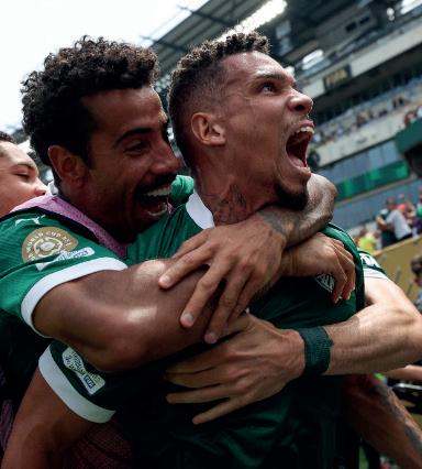 O jogador Paulinho, da SE Palmeiras, comemora seu gol contra a equipe do Botafogo FR, durante partida válida pela oitava de final, da Copa do Mundo de Clubes da FIFA, no Lincoln Financial Field. (Foto: Cesar Greco/Palmeiras/by Canon