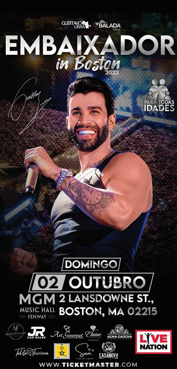 Após o sucesso da gravação do DVD Buteco In Boston, gravado ano passado no fechamento da turnê americana, Gus�avo Lima, está de volta aos Estados Unidos para mais uma turnê Internacional. Para fechar com chave de ouro a turnê americana, Gus�avo se apresenta em Boston no domingo (2), no MGM Music Hall Fenway. Com classificação livre, o show em Boston terá o cantor Raffael Mendes na abertura.