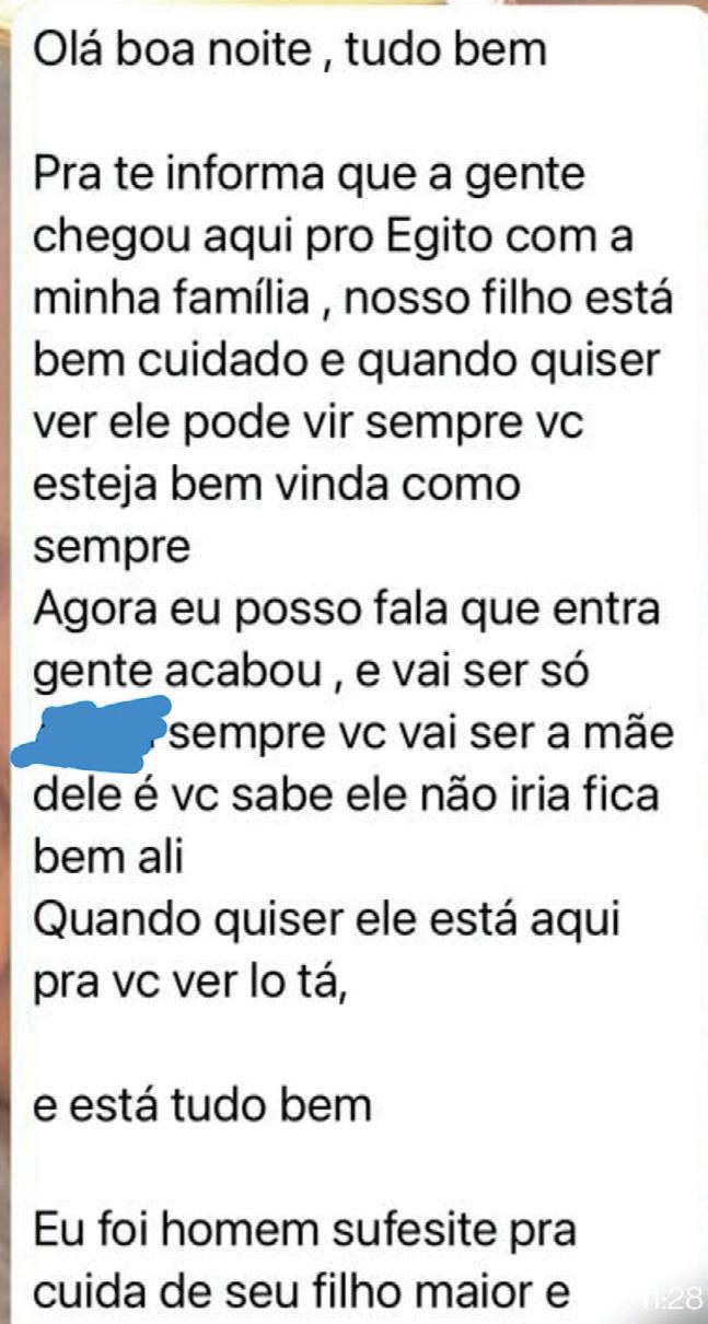 No dia seguinte, recebeu a mensagem de Ahmed que ele está no Egito com o filho