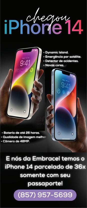 Os dois suspeitos faziam parte de um esquema que cobrava US$ 60.000 de cada mulher para ser transportada para fora de Cuba, pela fronteira sul, e entrar nos EUA. Os agentes da patrulha no Setor Tucson registraram quase 252.000 imigrantes, um aumento de 32% em relação ao ano passado. E os agentes do Setor Yuma realizaram quase 310.100 detenções, um aumento de 171%. Year XXXIV - N˚ 3811 - Wed, Oct 26th to Thu Oct 27th of 2022 3811 Times 34yrs Brasileiro está no filme que encerrará Festival Internacional de Cinema Infantil de Boston Associado do Sicoob Crediriodoce pode ganhar até R$ 1 milhão em vales-poupança Várias mulheres são resgatadas do tráfico humano depois de pagar para cruzar a fronteira dos EUA Mais de 500 mil imigrantes são detidos na fronteira do Arizona em 2022 Brasileiro é brutalmente espancado em Washington CONTRABANDO NA FRONTEIRA VIOLÊNCIA 03 16 o seu advogado brasileiro nos usa 978.453.7225 648 Central Street - Lowell 425A Broadway - Everett INFO@BRACKLAW.COM Os advogados da Bracklaw já pagaram mais de 1 milhão de doláres em indenizaçõesWWW.BRACKLAW.COM ACIDENTES DE CARRO? ADVERTISING ADVERTISING SPECIAL OFFER PROMOÇÃO DE OUTONO VOCÊ DE CELULAR NOVO (508) 452-8592 ADQUIRA AQUI Solução Educacional para estudantes Internacionais. Vários programa com CPT e OPT 1-888-910-5051 csinow.edu international@csinow.com mencione o código promocional para receber isenção da taxa de inscriçãoBT100 COMPETÊNCIA E PROFISSIONALISMO QUE VOCÊ PODE CONFIAR 617.591.9888 281 Broadway Somerville, MA 02145 508.872.2624 100 Concord St. Suite 1E Framinham, MA 01701 POUPANÇA PRODUÇÃO leia mais na PÁGINA 11 leia mais na PÁGINA 06 Poupança Premiada distribui mais de um milhão de reais em vales-compras Tempo em Boston: • Quinta-feira• Quarta-feira Chuva (63°/58°) Sol (67°/42°)