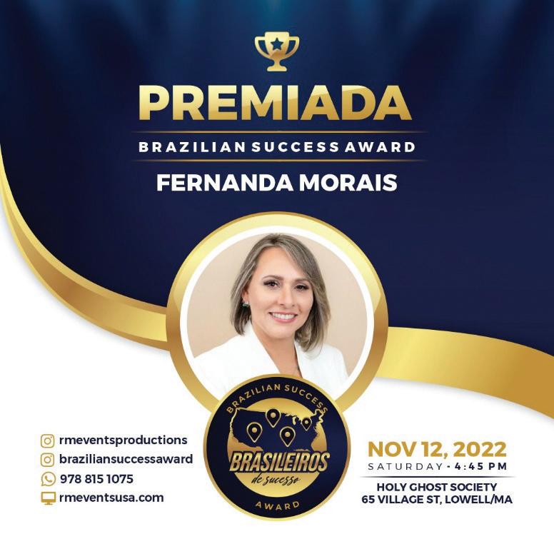 Ela tem feito um trabalho de excelência frente a diretoria da Febracis Boston, impactando milhares de brasileiros de New England. Fernanda Morais é uma das principais referências quando o assunto é coaching Também não é para menos: com uma vasta experiência, além de diretora da Febracis Boston, Fernanda Morais é mestre em coaching e mentora de mulheres. Dia 12 de novembro ela receberá o prêmio Brazilian Success Award, em um badalado evento que acontece em Lowell (MA).