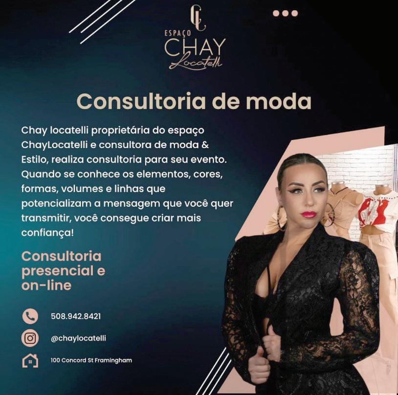 Graduada em farmácia no Brasil e apaixonada por moda desde sempre, a empresária e consultora Chay Locatelli é referência quando o assunto é estilo e moda feminina brasileira nos Estados Unidos. Proprietária do Espaço Chay Locatelli, localizado no centro da cidade de Framingham (MA), Chay oferece às suas clientes uma consultoria exclusiva, através de elementos, cores, formas, volumes e linhas que potencializam a imagem que você deseja transmitir, seja na sua vida profissional ou social. A consultoria pode ser presencial, para quem reside em New England e online para quem mora em outros estados americanos, ou mesmo no Brasil. Para mais informações, entre em contato pelo WhatsApp +1(508)942-8421 e siga @chaylocatelli nas redes sociais.