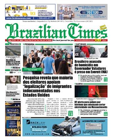 brasileiro. 18 10 leia mais na PÁGINA 15 leia mais na PÁGINA 17 leia mais na PÁGINA 23 Year XXXV • N˚ 3866 • Fri, March 3rd to Thu, Mar 9th of 2023 3866 Times 35yrs 978.453.7225 648 Central Street - Lowell Info@bracklaw.com Danilo J. Brack, Esq o seu advogado brasileiro nos usa