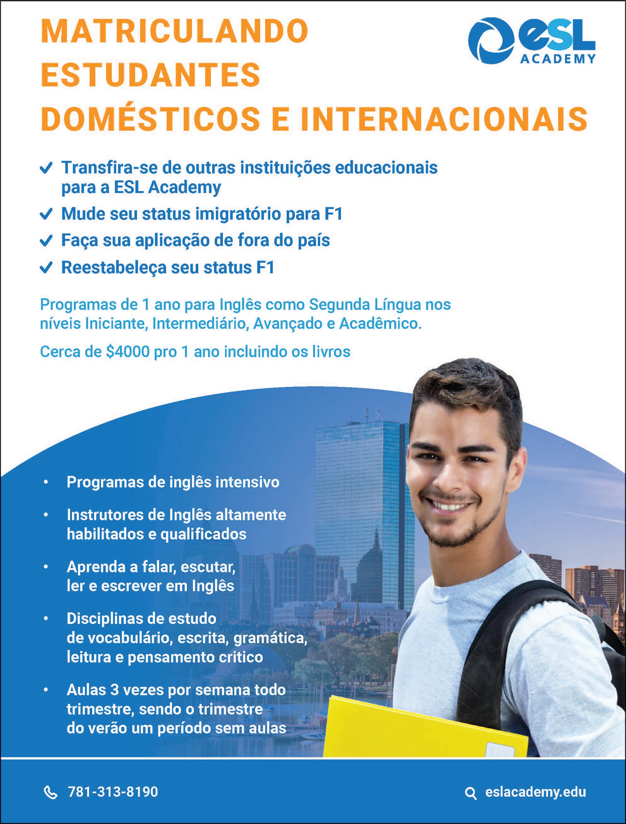 INVESTIGAÇÃO BODAS DE PRATAS DESCONTROLE leia mais na PÁGINA 31 Year XXXV • N˚ 3935 • Fri, Aug 11th to Thu, Aug 17th of 2023 3935 Times 35yrs DEFORMAÇÃO PROFISSIONAL 978.453.7225 648 Central Street - Lowell Info@bracklaw.com Danilo J. Brack, Esq o seu advogado brasileiro nos usa • Aplicação de visto de estudante (Deferred Action); • Ajustamento de status para residência permanente (Green Card); • Apelação, cancelamento e suspensão de exclusão e deportação; • Cancelamento