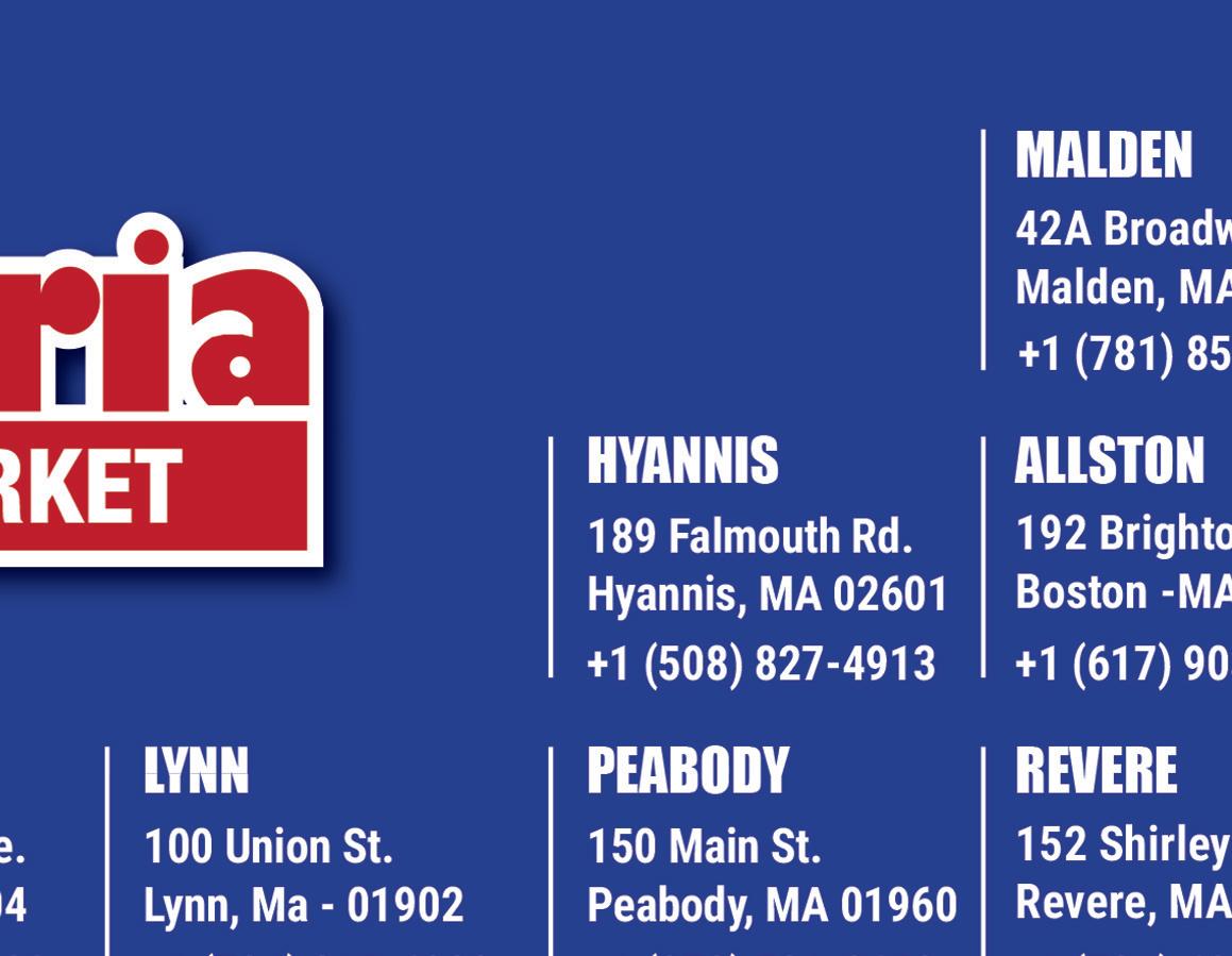 38 O MELHOR CAMINHO PARA DIVULGAR A SUA EMPRESA friday, September 29th of 2023 LIGUE E ANUNCIE (617) 625-5559 SUPERMERCADO - AÇOUGUE - PADARIA UM PEDACINHO DO BRASIL EM WALTHAM 769 Main Street - Waltham (617) 291-3617 @cowboysupermarket Sempre trabalhando para melhor atender a você consumidor com produtos de alta qualidade. O OLIVEIRA DELI MARKET possuí sua tradicional linha de carnes como: • Picanha • Contra Filé • Costela • Lagarto Oliveira`s Deli Market 243 Faneuil St - Brighton MA 617-987-0191 Oliveira`s Deli Market - 279 Chelmsford St - Lowell MA 978-455-1724 • Músculo • Picanha com Alcatra • Galinha Caipira • Bacon Defumado • Murcela • Frango com Farofa • Jacaré • Cabrito • Carneiro • Torremos (mole e pururuca) • Pão com alho • Frango e Pernil Assados • Frango Desoçado VENDEMOS: SAL GROSSO TEMPERADO CARVÃO ESTAMOS EM DUAS LOCALIDADES • MEAT SHOP • MARKET • AÇOUGUE • MERCADO • 179 President Ave - Fall River MA 774-294-4937 COMPRE ONLINE! aberto todos os dias, das 05:30am as 09:00pm O primeiro mercado e açougue 100% brasileiro em Fall River - MA 981 South Main - Fall River - MA | 508-617-9265 brazilian store Sinta-se em casa com boa comida,eserviços,ótimos produtos brasileiros. 328 Washington St. Weymouth, MA