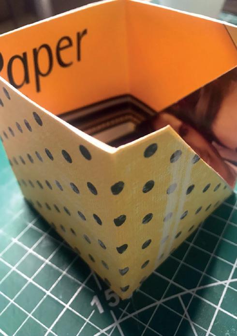 corte o papel de modo a ficar no tamanho 15x15cm ou 6x6” e vinque 5x5cm ou 2x2”