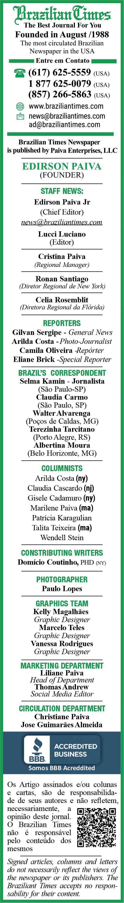 Informações: 1-877-6250079 ou no WhatsApp: (617) 415-3657.