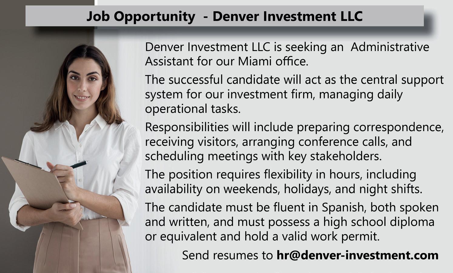 Vaga para- pe pessoa com experiência na área de RH , c/nivel superior , Inglês de Avançado a fluente, disponível para trabalhar de seg a sabado, pessoa tem que ser dinâmica porém concentrada, responsável, educada, pedimos ITIN Number ou Social, c/carro , pedimos que elabore o curriculum e envie por watts zap, passarei todas as informações por lá : (508) 789-4451. #D