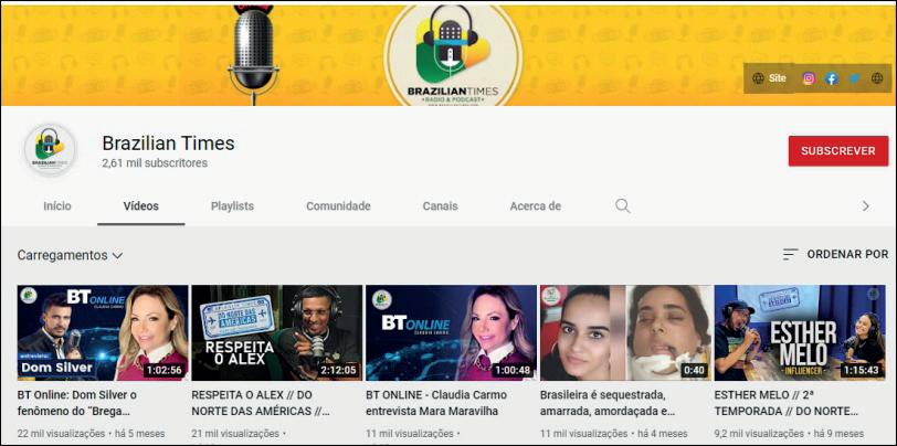 O canal do Brazilian Times no YouTube, onde o seguidor encontra entrevistas com várias pessoas sobre assuntos de interesse da comunidade, também está cresendo. Conduzido por um grupo de apresentadores, são abordados políticas, imigração, ação social e tudo que engloba os brasileiros nos Estados Unidos.