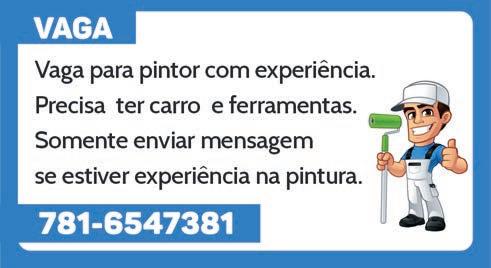 Precisa-se- de ajudante de pintura (que tenha conhecimento) Precisa ter carro para chegar no trabalho. Entrar em contato somente se tiver carro com no telefone somente 1 vaga. (781) 530-8094. #A