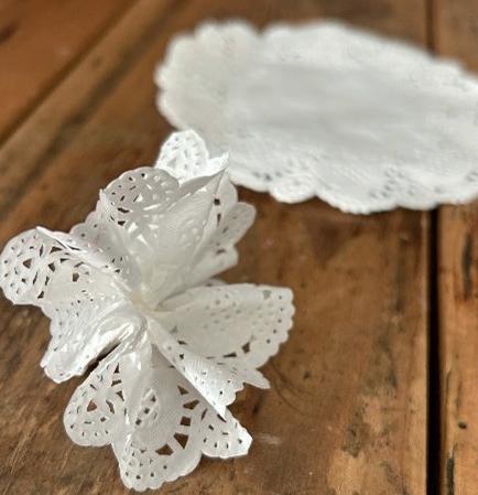 Acabamento – Se desejar, amarre um laço bonito ou cole apliques decorativos. Eu fiz essas flores usando doily e colei com cola quente.