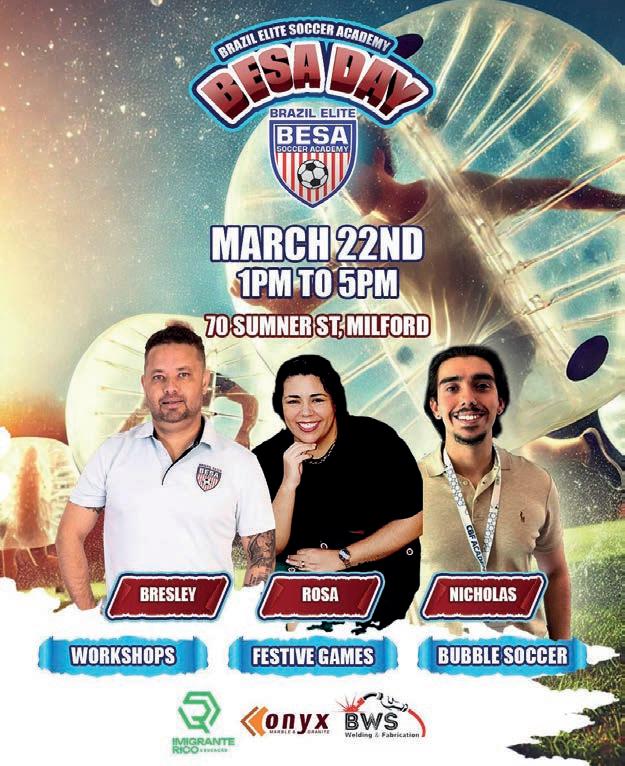 o dia 22 de março, a Brazil Elite Soccer Academy (BESA) realizará o BESA Day, um evento especial que acontece das 13h às 17h, em Milford, no endereço 70 Sumner St. A iniciativa é aberta ao público e promete proporcionar uma tarde de muita diversão, aprendizado e integração para crianças, jovens e suas famílias.