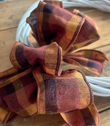 Como eu quero uma guirlanda mais simples, eu usei um laço, que na verdade eram sobras do natal, usei dois lacos, colei um sobre o outro e colei na guirlanda usando cola quente. Eu optei em colar na lateral da guirlanda.