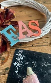 Depois comecei a colar as letras em madeira na base da guirlanda