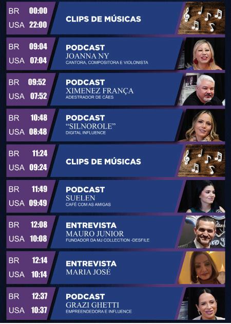 A programação desta sexta-feira, dia 16, inclui ainda a entrevista com o modelo e DJ Jesus Luz, que vai ao ar às 8pm, reforçando a proposta da BTTV de oferecer conteúdo diversificado e entrevistas exclusivas ao público brasileiro nos Estados Unidos e em outros países.