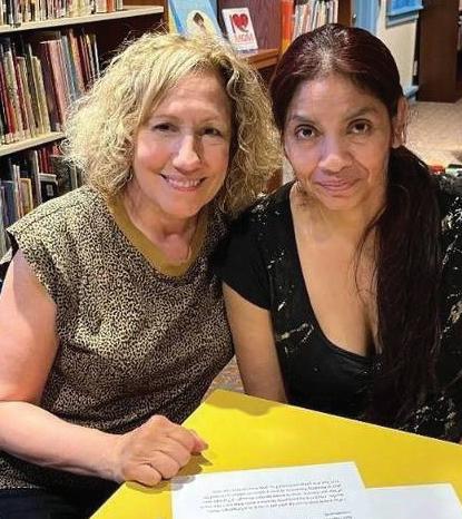A voluntária de alfabetização Barbara Lawler, à esquerda, com uma cliente ESL em uma biblioteca local. Crédito da foto-Condado de Somerset