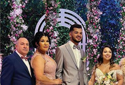Os noivos com o tio do noivo Luciano e osobrinho Arthur que saiu do Brasil para prestigiar oenlace matrimonial