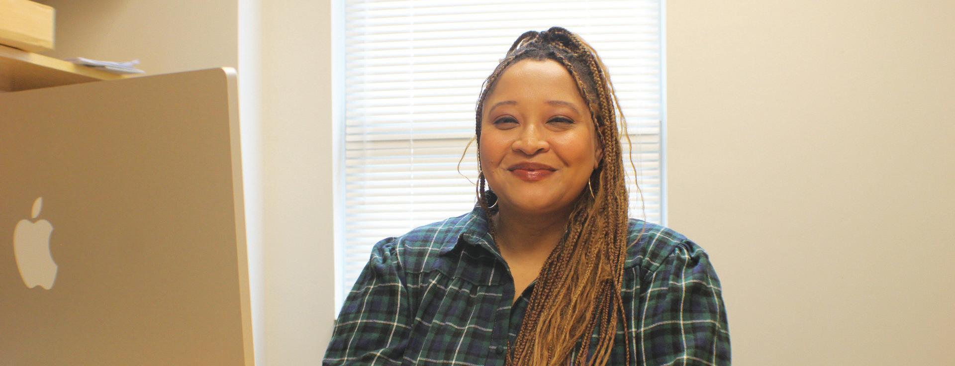 Jayda Knight, drag queen and CEO of Rhinestone Productions, interacts with people on social media as she holds up her microphone to a ring light. She said the company will “take the course of action as needed” if the Tennessee drag ban reaches Virginia. K. Mauser / The Breeze
