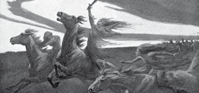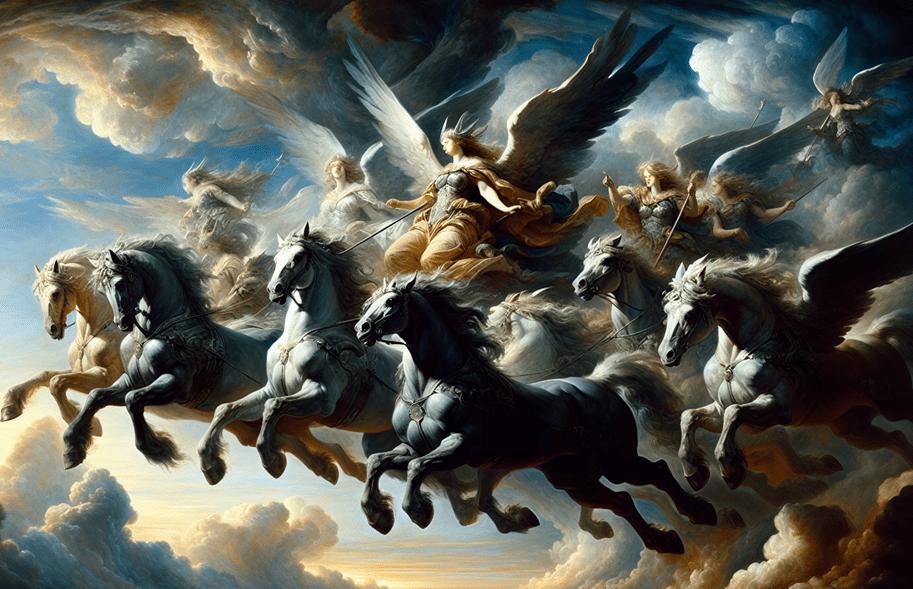 Female warrior spirits who serve Odin, the Valkyries choose who lives and dies in battle. Their role connects warfare, fate, and the afterlife in Norse belief. By bringing chosen warriors to Valhalla, Odin’s hall, they prepare an army for the final battle of Ragnarök. Valkyries also serve mead to the einherjar (chosen warriors) in Valhalla, embodying both martial prowess and hospitality.
