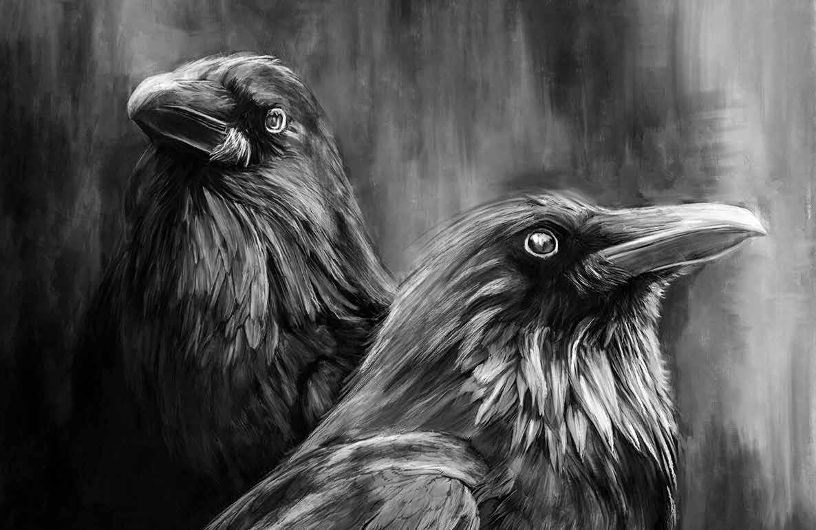 Odin’s ravens, whose names mean “thought” and “memory” respectively, represent Odin’s far-reaching wisdom and knowledge. They fly around the world each day, bringing information back to Odin, symbolizing his omniscience and connection to all realms. Their daily flight mirrors Odin’s constant quest for knowledge, even at great personal cost, as reflected in myths where he sacrifices an eye or hangs himself to gain wisdom.