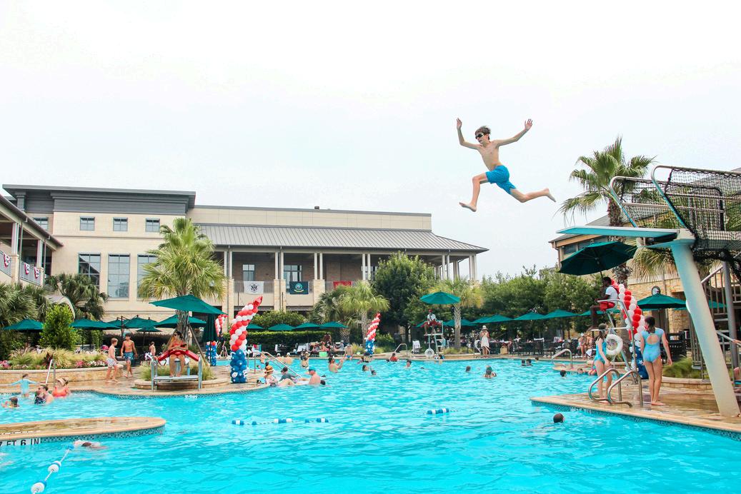 All children under the age of 5 must be accompanied & supervised at arm's length by a responsible adult in the Family Resort Pool. Only children 4 & up may use the pool slide. Children must be 7 years old or 48 inches tall to use the High Dive. No flips or somersaults are allowed from the High Dive.